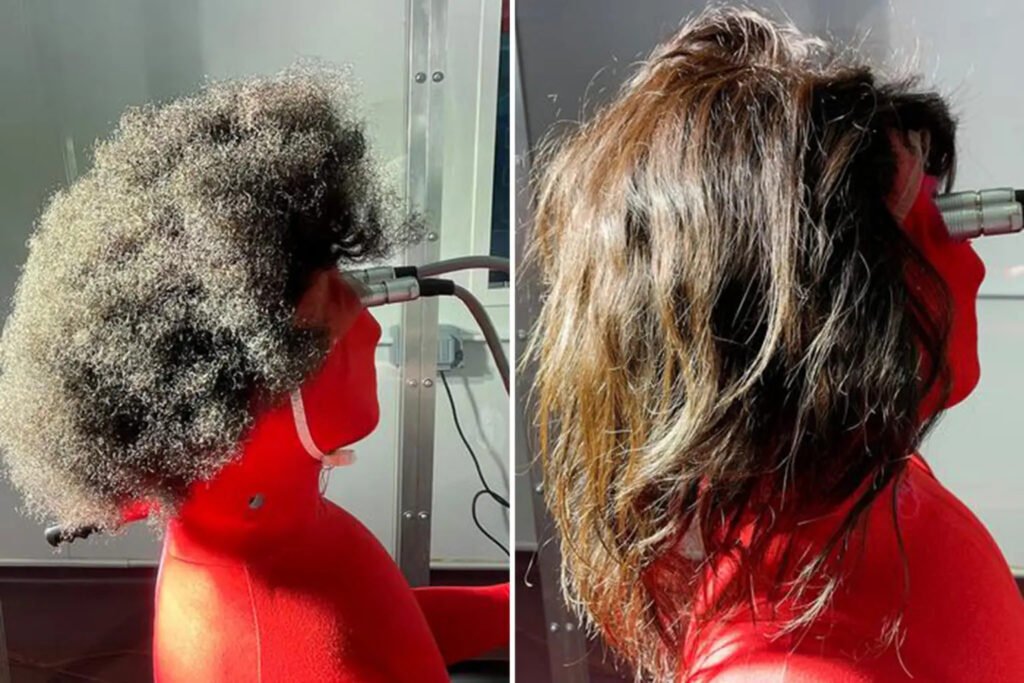 Ardından; saçsız, düz saç, dalgalı saç ve kıvırcık saç olmak üzere dört farklı saç şekline sahip mankenlerin kafalarına radyasyon emilimini ölçmek amacıyla lambalar yönlendirildi.