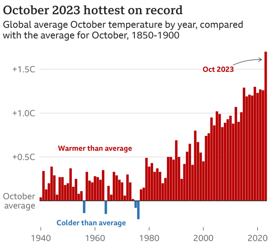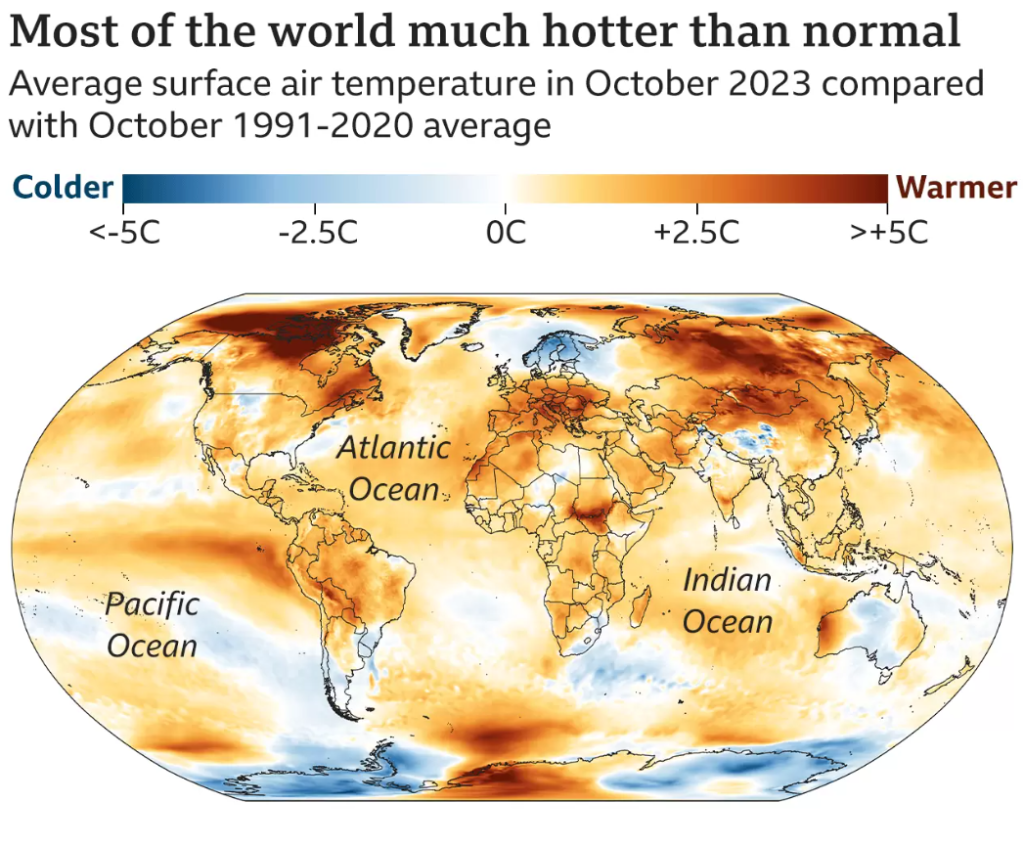 Copernicus İklim Değişikliği Servisine göre ekim ayı, eylül ayı kadar alışılmadık derecede sıcak olmasa da yine de “istisnai” bir farkla bu ayın rekorunu kırıyor.