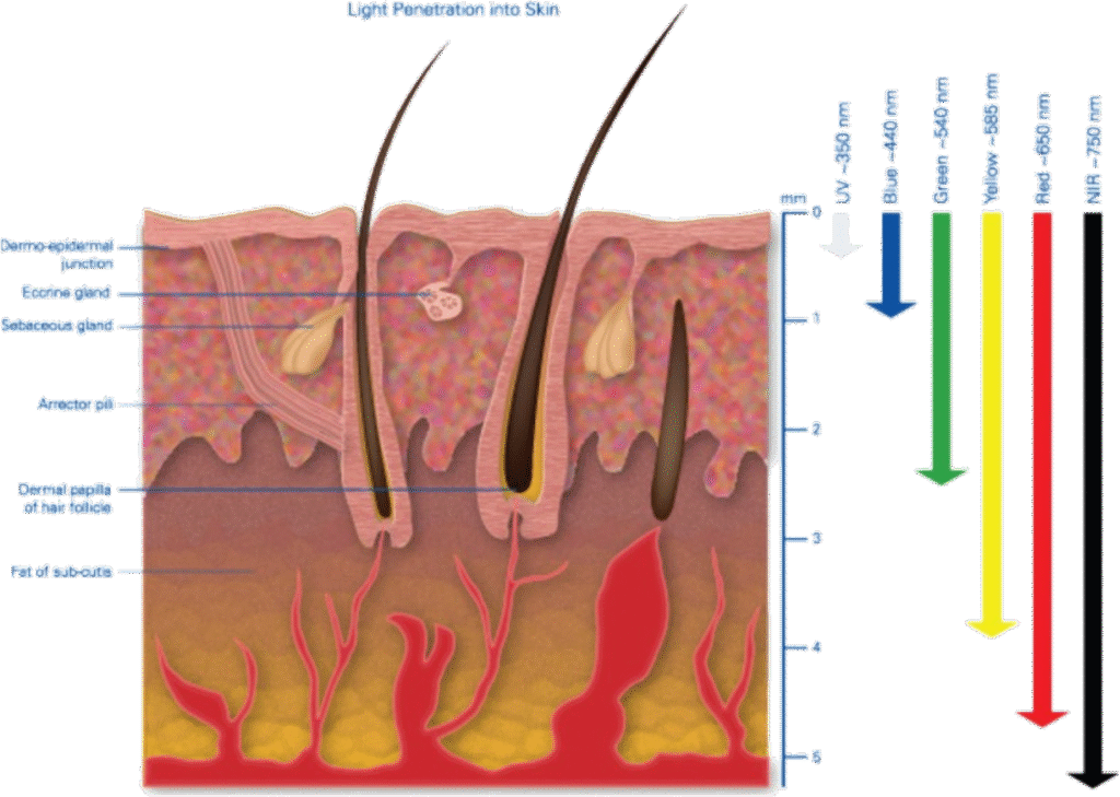 - Yakın Kızılötesi (NIR) Işık (yaklaşık 780-1000 nm): Cildin daha derin katmanlarına nüfuz edebilir ve kaslar, kemikler, sinirler gibi daha derin dokuları hedefleyebilir. Bu nedenle eklem ağrısı, kas iyileşmesi ve sinir hasarı gibi durumlarda tercih edilebilir.