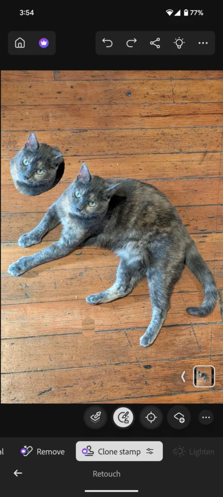 “Düzelt” (Retouch) seçeneğine dokunduğunuzda pürüzleri gideren “Leke İyileştirme” (Spot heal) aracı, görselin bir bölümünü başka bir yere kopyalamaya yarayan “Klon Damgası” (Clone stamp) aracı ile görüntünün seçili alanlarını aydınlatma veya karartma araçlarına ulaşabilirsiniz. Bazı araçların yanında küçük bir kaydırıcı simgesi bulunur; buna dokunarak fırça boyutu gibi ayarları yapabilirsiniz.