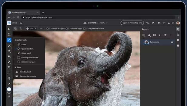 Geçtiğimiz Ekim ayında Adobe Max 2021 konferansı sırasında Photoshop’u Web’de başlattı. Ancak tarayıcı tabanlı uygulama, bazı fırçalar, katman ayarlamaları, kırpma vb. kullanabildiğiniz ama Photoshop’un tüm araç cephaneliğine sahip olamadığınız sadeleştirilmiş bir sürümü.