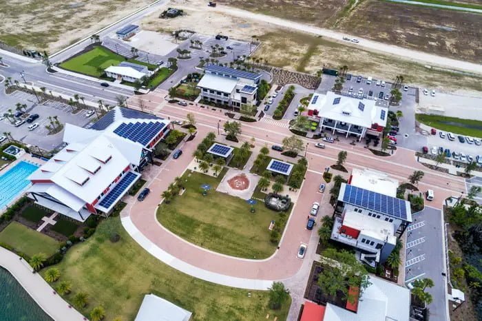 Fort Myers’ın hemen kuzeyindeki kasaba, elektriğini 650.000 panelden oluşan 870 dönümlük bir güneş enerjisi dizisinden alıyor. Sistem, şehrin tükettiğinden daha fazla enerji üretiyor ve bulutlu günlerde ve geceleri güç sağlamak için piller kullanıyor.
