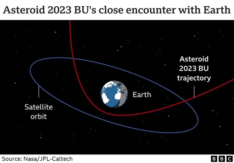 Dünya’nın yanından geçmek üzere olan büyük bir asteroit var. Yaklaşık bir otobüs büyüklüğündeki 2023 BU olarak bilinen gök taşı, gece yarısından hemen sonra Güney Amerika’nın güney ucundan geçecek.