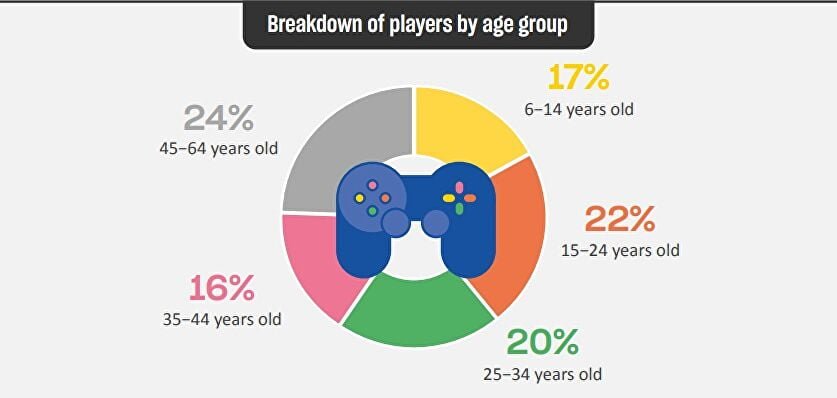 Sol diyagram: Ortalama oyuncuların yaşı 33 – Oyuncuların %76’sı 18 yaşının üzerinde