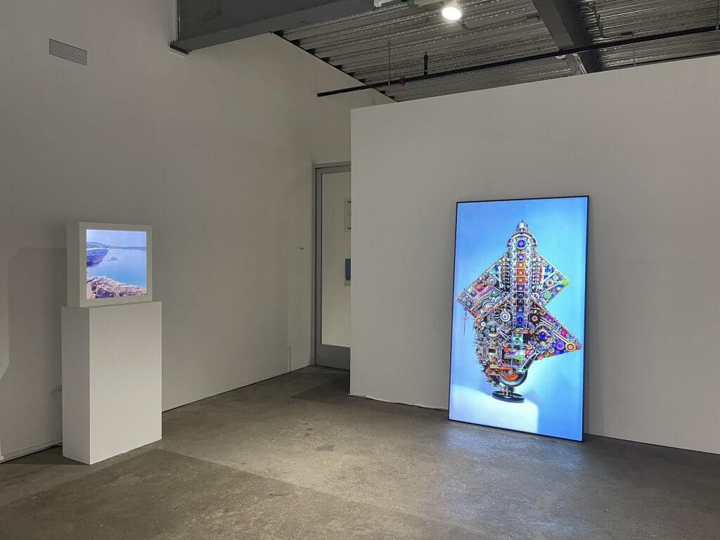 “Yapay Hayal Gücü” ayrıca fiziksel sunuma yeni yollar açıyor. Marina Zurkow’un yapay zekâ animasyonlu sahnelerinden biri Hahnemühle bambu üzerindeyken, Ellie Pritts’in çalışması 10 fit yüksekliğe yansıtılıyor. Her parça, her sanatçının pratiği için anlamlı olacak şekilde uyarlanmış bir NFT ile sunuluyor.