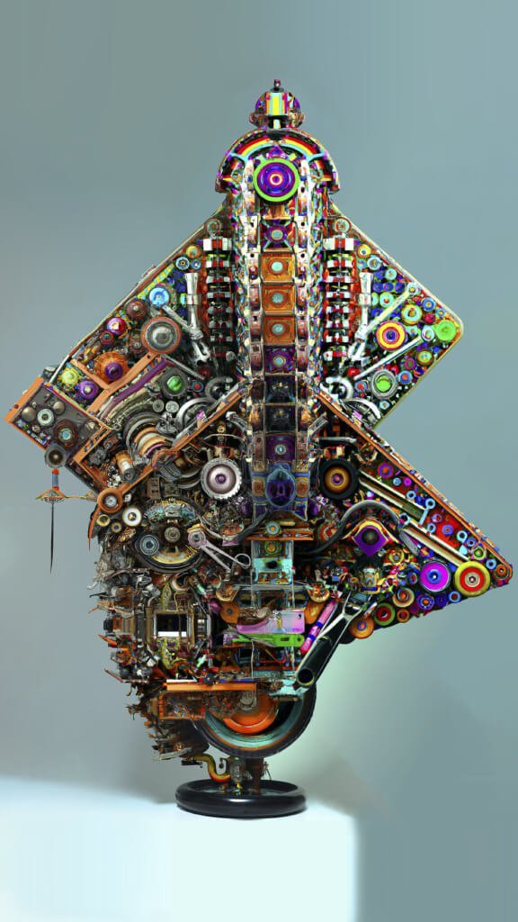 Katılımcı sanatçılar, hareketli dijital yaratıcı Refik Anadol’dan sergi için ilk sanat eserini yaratan teknoloji yöneticisi ve geliştirici Suhail Doshi’ye kadar uzanıyor. MIT eğitimli robotist Alexander Reben de gerçek bir heykel için ilgi çekici bir başlangıç noktası elde edene kadar metni işlemek ve yeniden inşa etmek için OpenAI tarafından özel bir GPT-3 modeli kullanarak ürettiği eserini sergiliyor. Reben’in çalışması hakkında konuşan Sack, “Yaratıcı sürecin tamamen tersine çevrilmesiydi.” ifadesini kullandı.