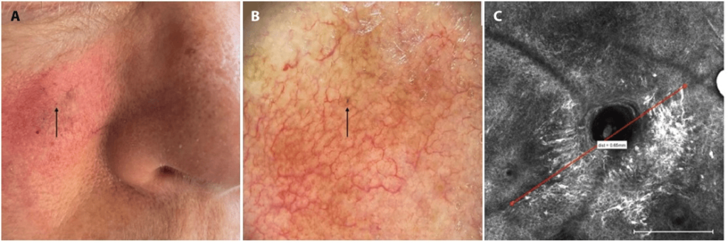 Araştırmacılar tarafından akıllı telefon ile lekenin bir fotoğrafı çekilerek melanomla ilgili atipik hücreleri gösteren reflektans konfokal mikroskopi (sanal biyopsi) ile ek görüntüleme yapılıp o noktanın dünyanın en küçük cilt kanseri olduğu tespit edildi.
