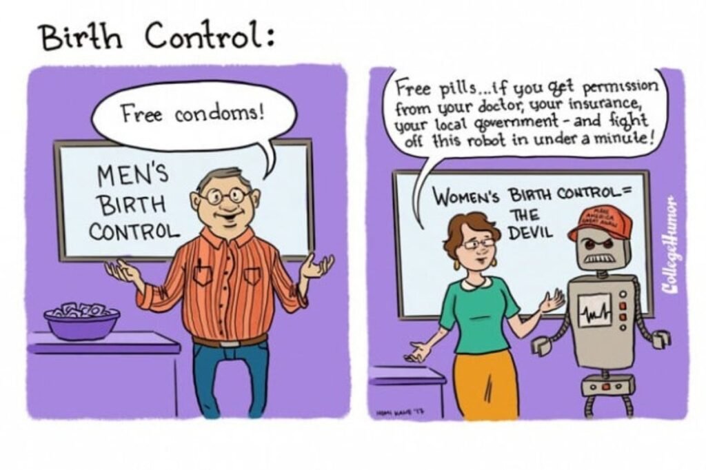 Kadınların Doğum Kontrolü= Şeytan- “Bedava haplar… Eğer doktorundan, sigortandan, yerel yönetimden izin alırsan ve bir dakikadan kısa sürede bu robottan kurtulursan!”