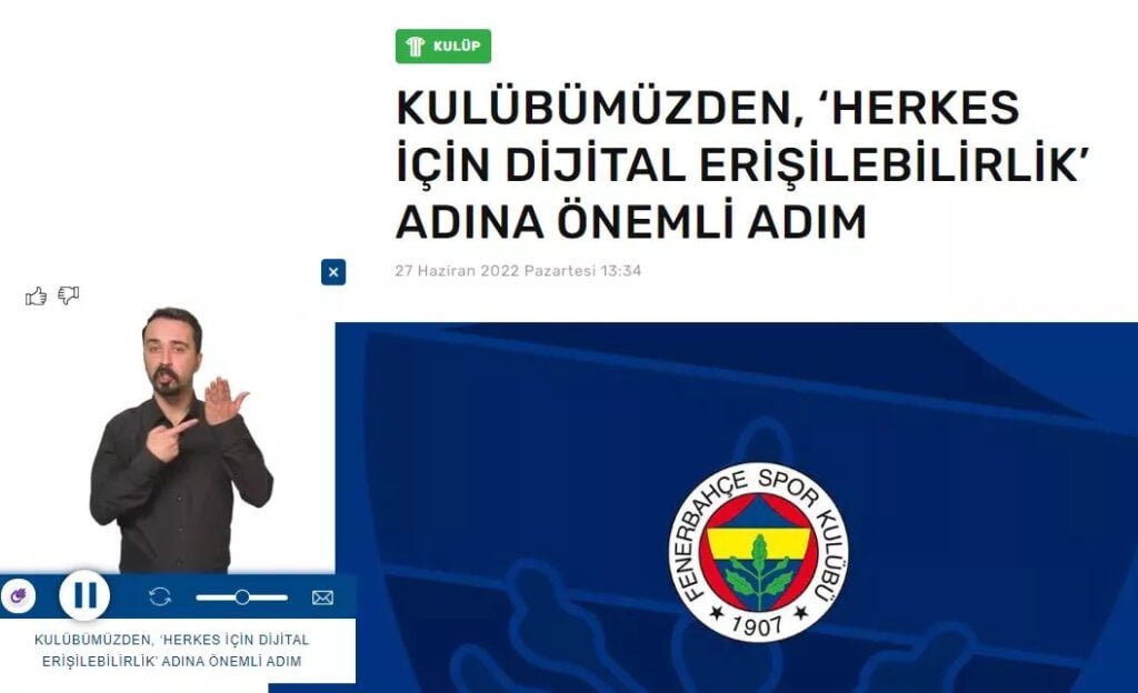Kulüp, resmi internet sayfası www.fenerbahce.org’da kullanıma sunulan ‘‘İşaret Dili Çeviricisi’’ eklentisi ile dijital erişilebilirlik sorunu yaşayan kişilerin deneyimlerini de dinleyerek sadece bir hareket olarak kalmaktan öte, dijital erişilebilirlik sorununa köklü çözüm yolları bulmayı hedefliyor.