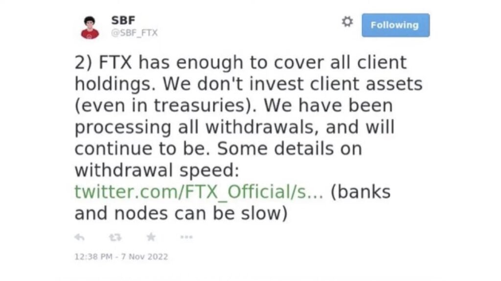 İşin özeti: Müşteriler FTX’e Bitcoin ve Ethereum türü kripto paralar emanet ettiğinde bu paraların FTX’te kalacağının garantisi yoktu. Ancak Sam Bankman-Fried’in 7 Kasım’da attığı tweet bunun tam tersini iddia ediyor. Bu tweet, müşteriler FTX’e ne kadar kripto koyduysa onu geri alabileceklerini iddia ediyordu. Fakat Sam Bankman-Fried, diğer tweetleriyle birlikte bunu da sildi.