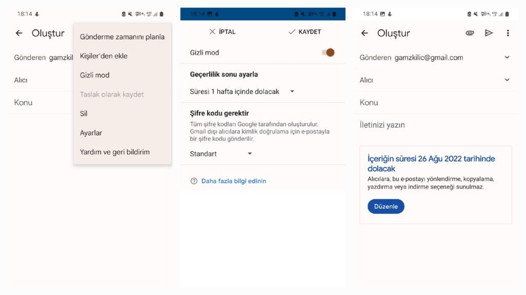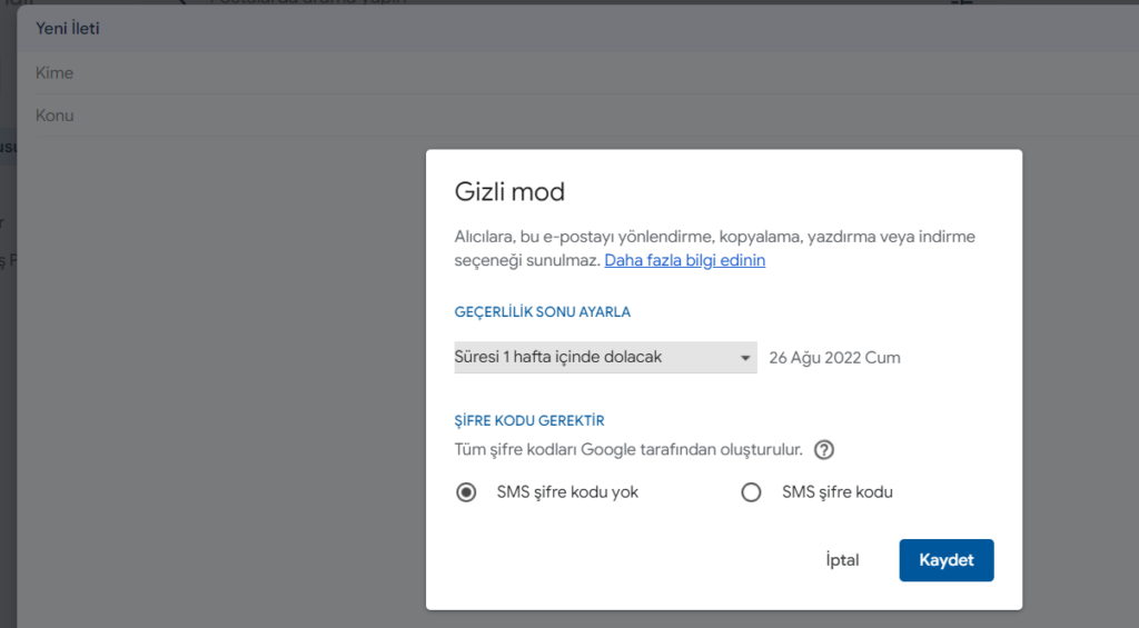 Google, 2018’de Gmail için gizli modu tanıttı. Bu ayar, kişilerin süresi dolan iletiler göndermesine olanak tanıyor ve alıcıların iletilerin içeriklerini kopyalamasını, başkalarına iletmesini veya indirmesini engelliyor.