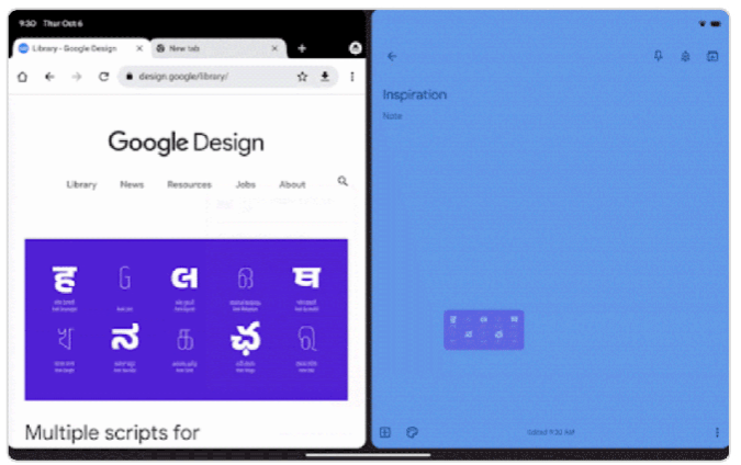Sürükle ve bırak işlevi, kullanıcıların Chrome’dan Gmail, Keep ve Fotoğraflar gibi uygulamalara bağlantılar, resimler ve metinler arasında gezinmesine olanak tanıyor. Google, temmuz ayında Android tabletlerde Drive, Dokümanlar, E-Tablolar, Slide ve Keep gibi uygulamalar için benzer bir sürükle ve bırak desteği sundu.