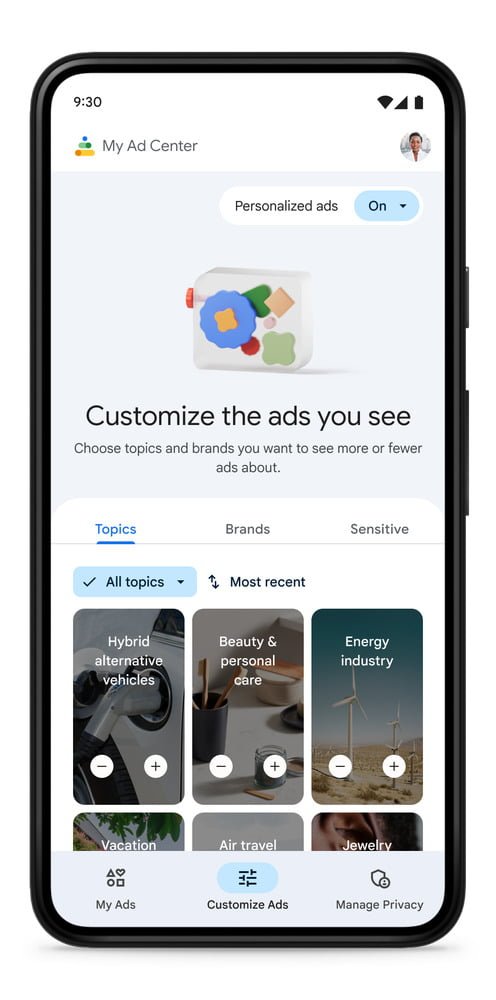 Google Başkan Yardımcısı ve Reklamlar Genel Müdürü Jerry Dischler’in bir blog gönderisine göre mevcut kontrollerle belirli markaların ve tanışma, alkol, kilo verme gibi konuların reklam miktarını artırmak veya azaltmak, hatta tamamen devre dışı bırakmak mümkün olacak. Dischler örnek olarak çıktığınız bir seyahatten sonra çok fazla tatil reklamı görüyorsanız, tatil reklamlarını devre dışı bırakabileceğinizi belirtiyor.