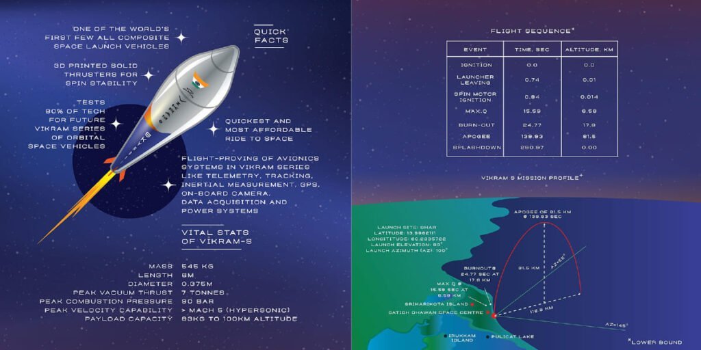 Dört yıllık bir özel sektör girişimi olan Skyroot Aerospace tarafından geliştirilen Vikram-S, yaklaşık 550 kilogram kütleye sahip, tek kademeli, katı yakıtlı bir roket. Tamamen karbon fiber çekirdek yapısından oluşan 6 metre uzunluğundaki roket iki yılda geliştirildi.