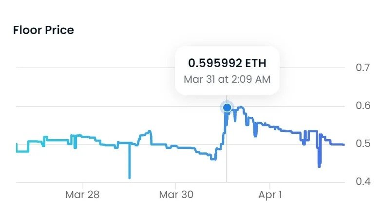 Opensea istatistiklerine göre iddianamenin ardından satışlar, bir günde %400’ün üzerinde artarak perşembe günü 90 ETH’nin üzerinde bir hacme ulaştı ve 31 Mart Cuma günü 0,59 ETH’lik taban fiyatı aştı. Sahiplerin sayısı şu anda 14.000’e yaklaştı ancak fiyatlar o zamandan beri nispeten ortalama seviyelere geri döndü.