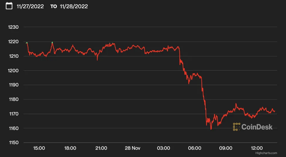 CoinDesk verilerine göre, Ethereum blok zincirinin yerel tokeni yaklaşık %4 düşüşle 1.170 dolara geriledi.