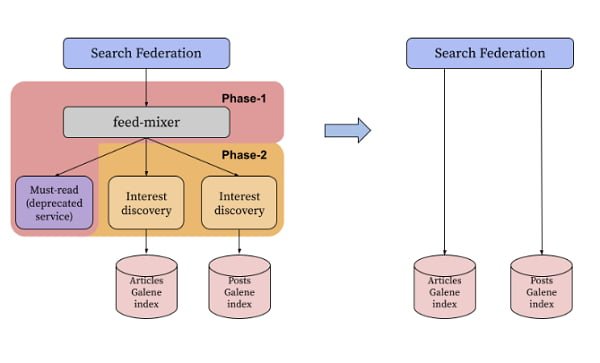 “İlk aşama, feed-mixer’ın çağrı yığınından kaldırılması. Yayma ve harmanlama arama federatörüne taşındı. İkinci aşama, ilgi alanını keşfetmeyi kaldırdı. Bu, yıllar içinde oluşan tüm karmaşayı ve ek veri işleme katmanlarını kaldırarak basitleştirdi.”