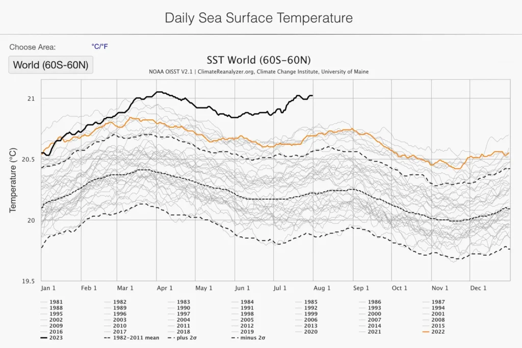 Dünya okyanuslarındaki ısınma, tam anlamıyla kontrolden çıkmış durumda. Geçtiğimiz hafta, Florida’nın Manatee Körfezi’ndeki bir şamandıra su sıcaklığı 38,3 santigrat derece olarak ölçüldü.