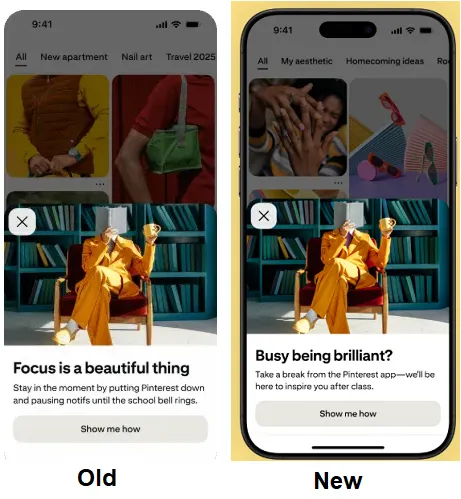 Pinterest, okuldayken öğrencilerin cihazlarından uzak durmalarını amaçlayan uygulama içi anlık bildirim özelliğini genişletiyor. Sistem ABD ve Kanada’da başarı ile test edildi.