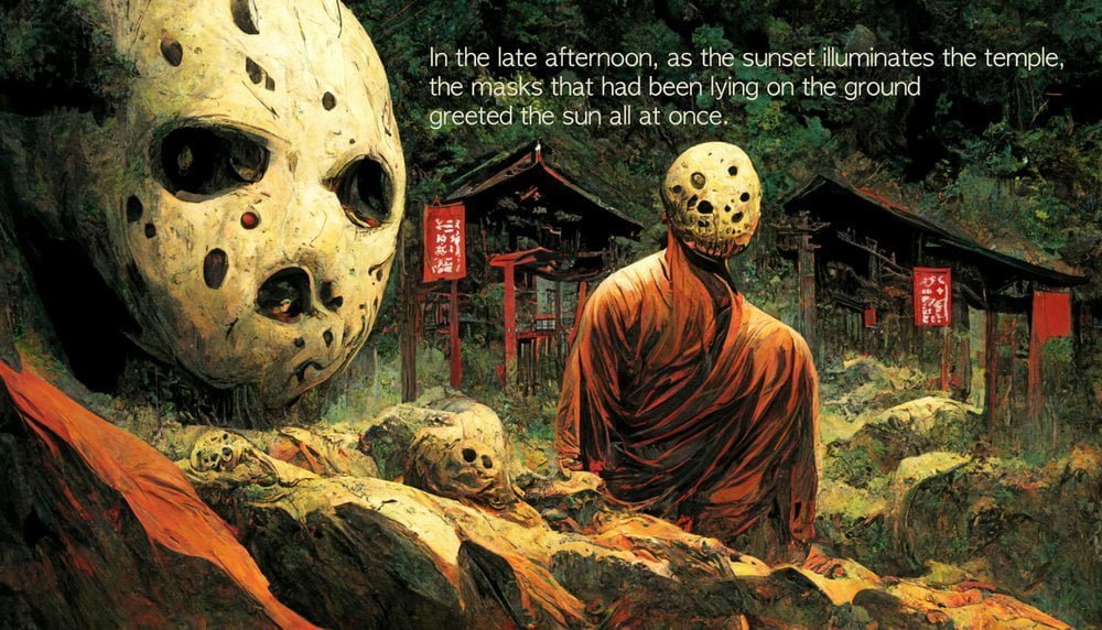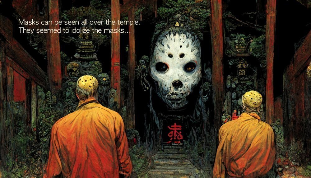 Kanadalı grafiker Yongwook Seong, 13. Cuma korku filminin şeytani maskeli ana karakterinden ilham aldığı ilk AI ile oluşturduğu ‘Seorak Dağı’ndaki Maske Tapınağı’ adlı görsel romanını çıkardı.