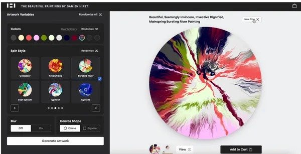 Ünlü İngiliz sanatçı Damien Hirst, son projesi ”The Beautiful Paintings” ile koleksiyonerlerin renk, stil, şekil, boyut ve ortam kombinasyonlarını seçebilecekleri çevrim içi bir kontrol paneline erişerek benzersiz fiziksel tablolar ve NFT’ler oluşturmalarına olanak tanıyor.