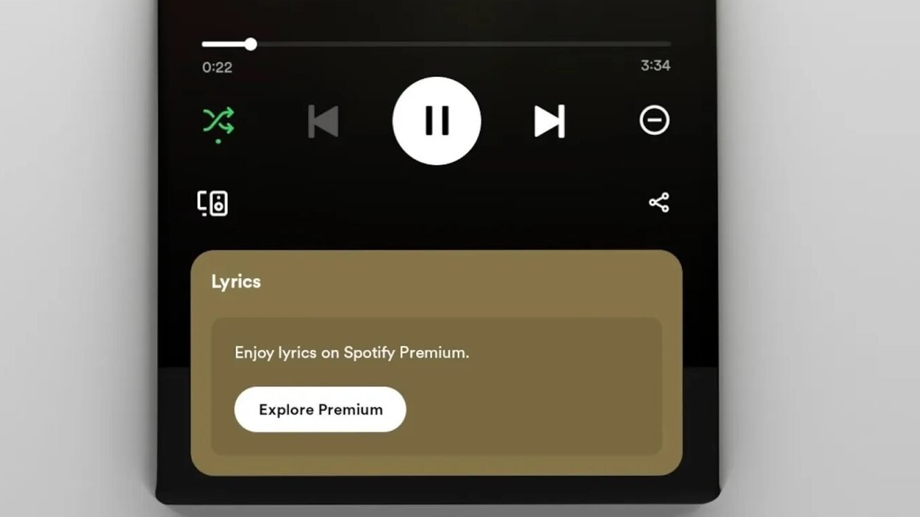 Spotify’ın ücretsiz sürümünde, bazı kullanıcıları şarkı sözlerine sadece ücretli abonelikle, yani Spotify Premium’la, erişilebileceğini gösteren bir mesaj karşılıyor. Bu mesajda “Spotify Premium’da şarkı sözlerinin keyfini çıkarın.” ibaresi yer alıyor. Spotify’ın yöneticisi olan CJ Stanley’in söylemine göre bu adım henüz test aşamasında. Şimdilik birkaç ülkede sınırlı sayıda kullanıcı bu mesajla karşılaştı.