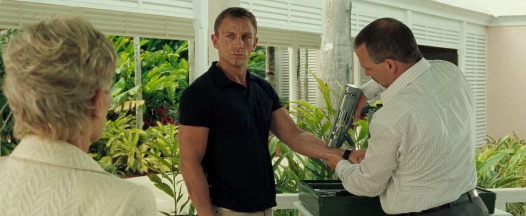 2006’da Casino Royale filminde İngiliz Özel İstihbarat Birimi MI6’nın başkanı ve Judi Dench’in canlandırdığı Bond’un kadın lideri M, Bond’a hayati belirtilerini ölçen ve konumunu takip eden bir mikroçip enjekte ettirir. Bu çip, onun bir poker maçı sırasında geçirdiği kalp krizi atağını atlatmasına yardımcı olur.