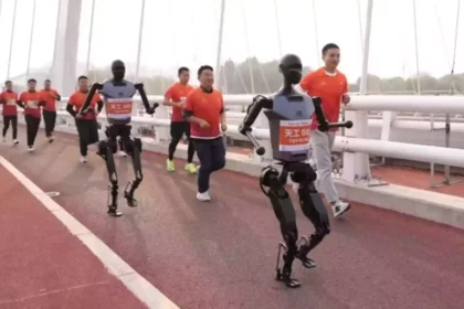 Çin'de düzenlenen Yizhuang Yarı Maratonu'nda binlerce insan ve 21 insansı robot birlikte…