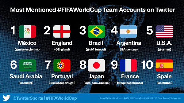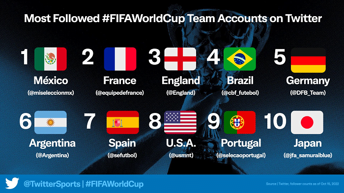 Ayrıca Meksika, Fransa ve İngiltere’yi geride bırakarak Twitter’da en çok takip edilen takım hesabı oldu.