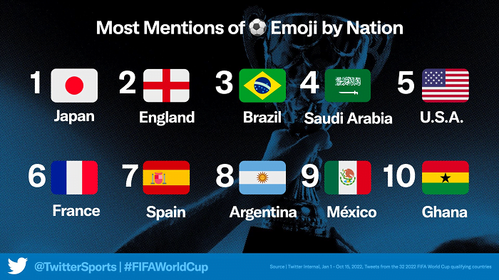 Japon kullanıcıların futbol topu emojisini ekleme olasılığı daha yüksek olsa da, bu ilgili etkileşimin en iyi ölçüsü olmayabilir. Ama dikkate alınması gereken başka bir faktör.