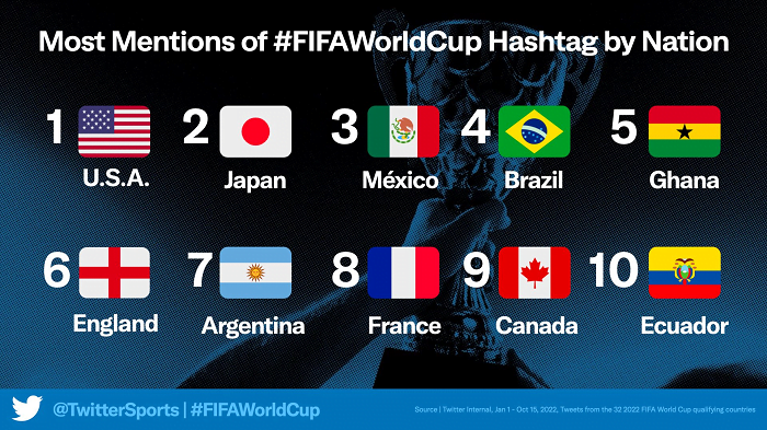 Daha şimdiden Twitter’ın Dünya Kupası etrafında dönen muhabbetler ve hangi takımların en çok ilgi çektiği hakkında yeni bir dizi bilgi yayımlamasıyla beraber uygulamada Dünya Kupası heyecanı yükselişe geçti.