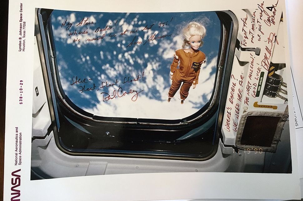 Uzay mekiği yükü eğitim mühendisi Steve Denison, 1989 görevinde bir Barbie aldı. Denison ve astronot eğitmen arkadaşları, eğitimden önce oyuncak bebeği mekik simülatörüne saklayarak onunla eğlenmeye karar verdiler. Mürettebat, Barbie’yi sevmişti, hatta onu uçuş için maskotları yapmışlardı.