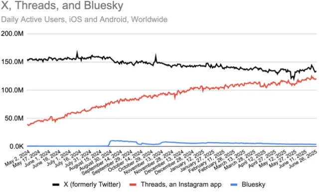 Uygulama istihbarat firması Sensor Tower tarafından sağlanan yeni verilere göre, Elon Musk’a ait sosyal ağ, 2025’in ikinci çeyreği itibarıyla yıllık bazda günlük aktif kullanıcı tabanında yaklaşık %10’luk bir düşüş yaşadı. X’in kullanıcı tabanı hala Meta’nın Threads’inden %65 daha büyük ve bir sonraki en büyük rakibi Bluesky’den 10 kat daha büyük olmasına rağmen, X’in bu alandaki kalıcı zaferi garanti altında değil.