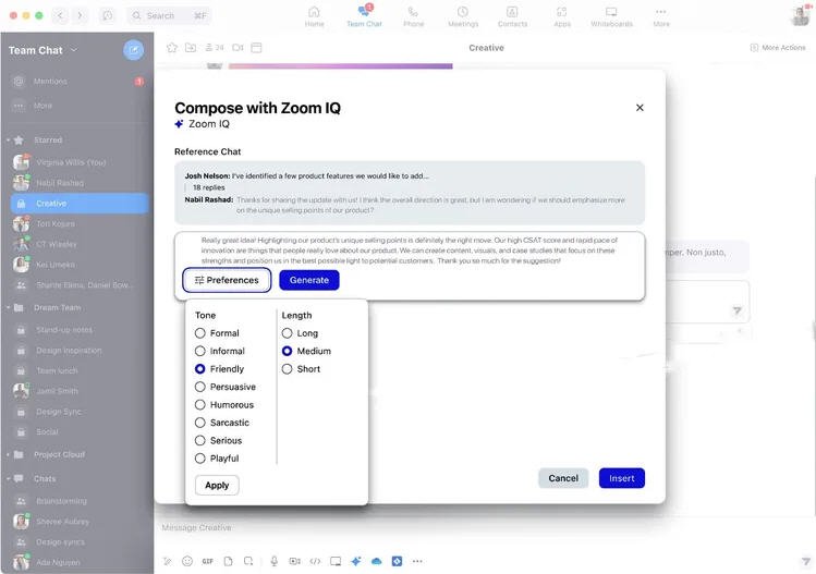 Zoom, video konferans uygulamasını geliştirmek adına OpenAI ile ortaklık kurarak yapay zekâ destekli asistanı Zoom IQ’nun kurulduğunu duyurdu. Yapay zekâ tarafından oluşturulan özetler, mesaj taslakları ve daha fazlası; Zoom IQ’nun kaçırılan içeriği özetlemesi ve daha fazla soru sorma seçeneği sunmasıyla kullanıcıların toplantılardan geri kalmamalarının bir yolunu sağlıyor. Ayrıca asistan, Zoom Team Chat’te metin istemlerine dayalı olarak beyaz tahtalar oluşturabilir, bununla birlikte toplantıları ve konuları özetleyebilir. Zoom IQ, kullanıcıların yapay zekâ kullanarak iş arkadaşlarına yanıtlar oluşturmasına da izin verecek. Şirket, nisan ayında yapay zekâ destekli mesaj ve e-posta taslakları ile belirli Zoom IQ toplantı özeti özelliklerini daha geniş bir şekilde kullanıma sunmayı planlıyor.